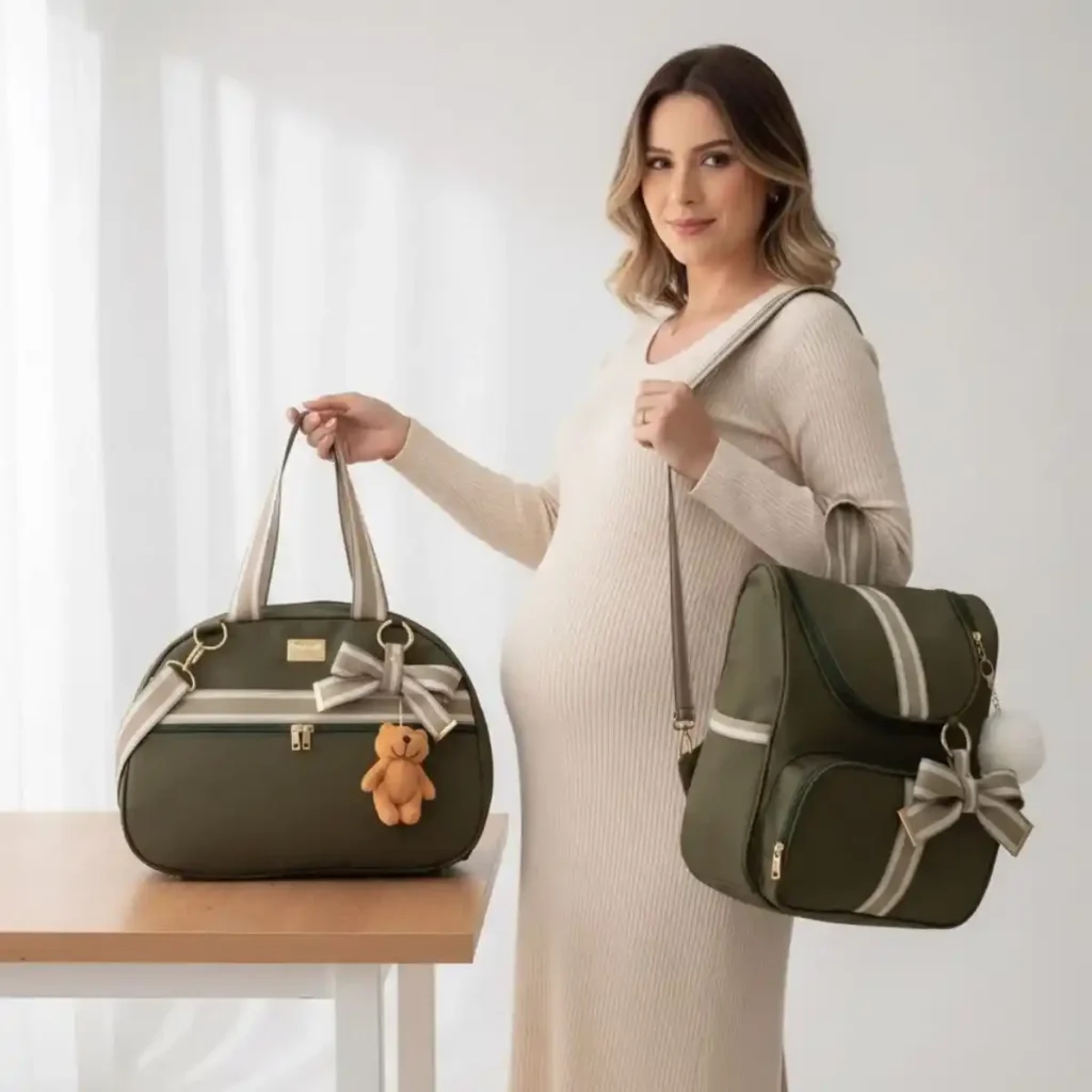 Levar duas bolsas separadas é um caos logístico quando você já tem que carregar dois bebês. Um bom kit de bolsas maternidade com divisórias internas ajuda a separar as trocas de cada um dentro do mesmo espaço. Lembre-se: na hora da saída de maternidade, você quer agilidade, não volume.